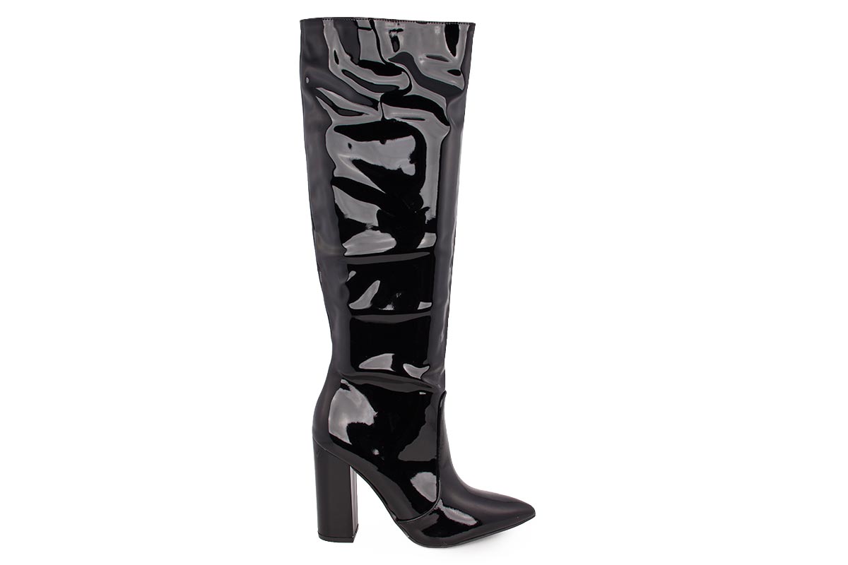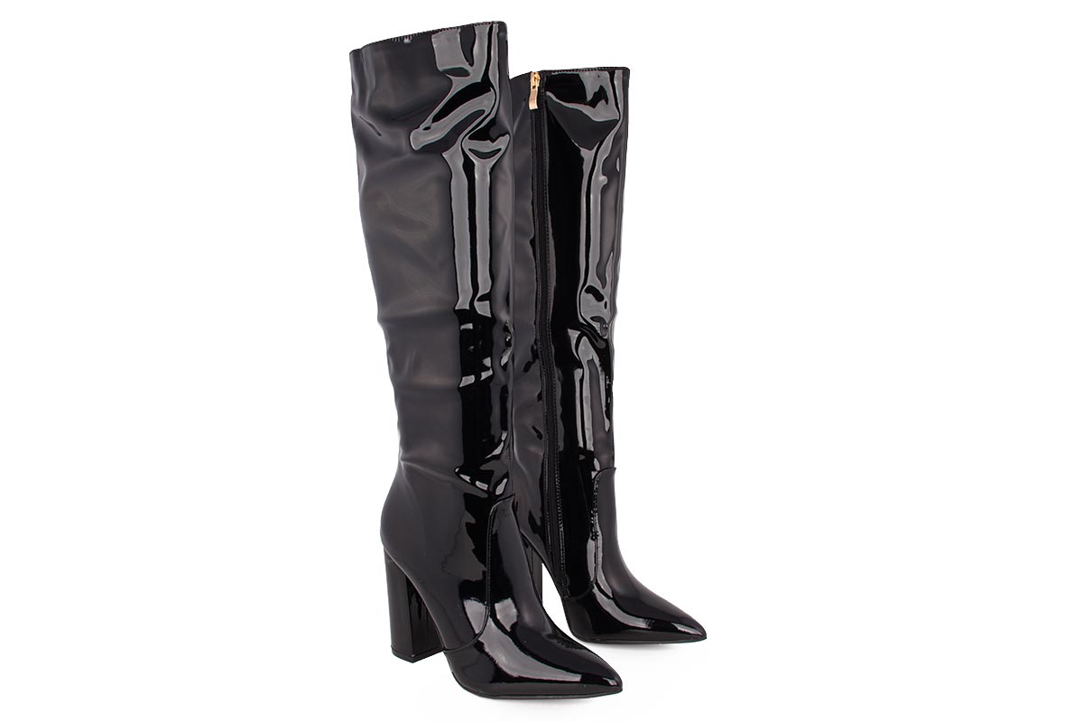 Γυναικείες μπότες μαύρες λουστρίνι με φερμουάρ για άνετη εφαρμογή. Διαθέτουν ελαφριά σόλα με γεμάτο ντυμένο τακούνι για σταθερότητα και άνεση στις βραδινές σας εμφανίσεις!