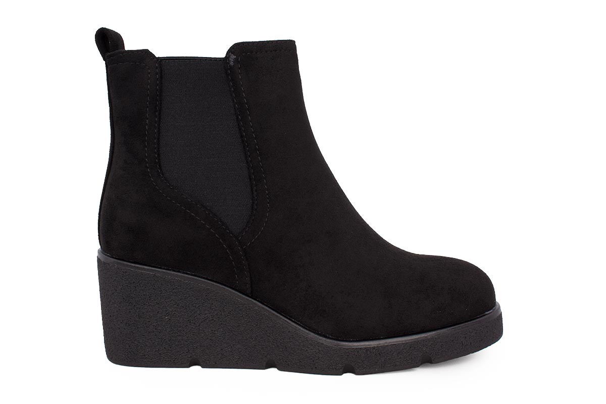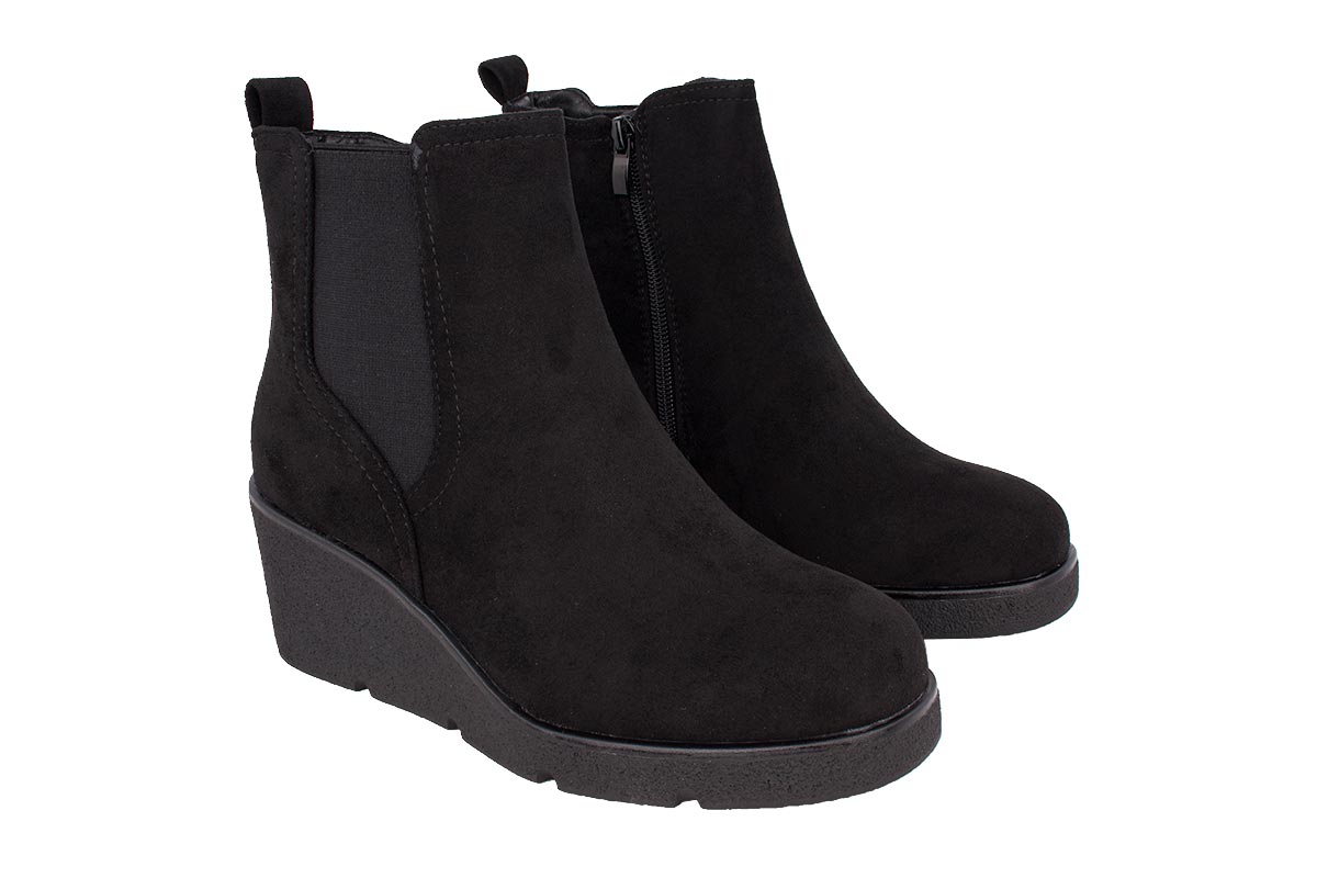 Γυναικεία μποτάκια Swede μαύρα δίπατα με πλατφόρμα και εσωτερικό λειτουργικό φερμουάρ με λάστιχο εξωτερικά για εύκολη εφαρμογή ❗ Διαθέτουν αντιολισθητική σόλα και γεμάτο τακούνι πλατφόρμα από κρεπ για σταθερότητα στο καθημερινό βάδισμα.